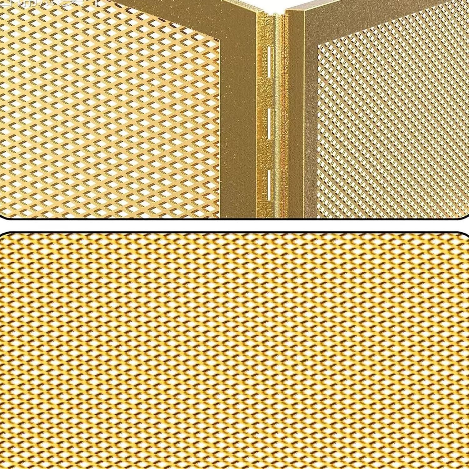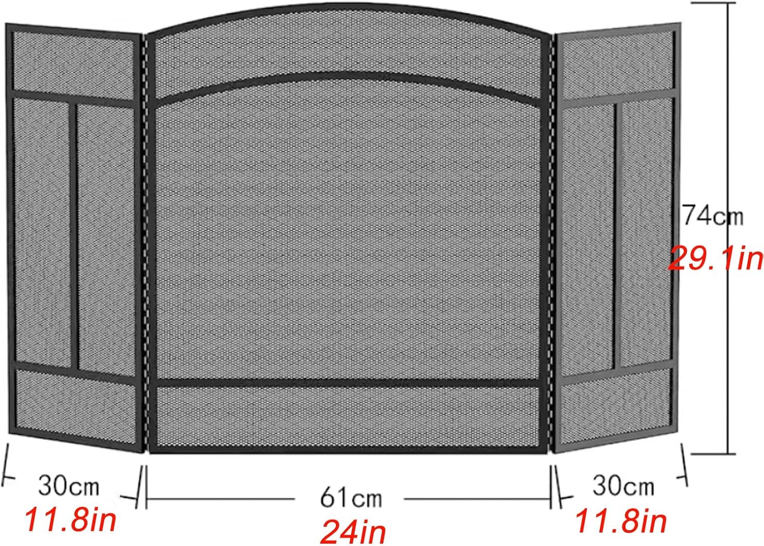 JKGHK 3 panel screen can be manipulated to your preference for the perfect setup in front of your fireplace and folded down for easy storage in compact spaces.Tightly woven steel mesh provides an easy-cleaning surface and a see-through barrier to trap sparks and embers.Heavy-duty steel is connected in three panels by a tight mesh with spot-welded hinges to create a solid construction that won't break down.Screen arched top almost matches with your fireplace tools and holders accessories.Name: Spark Fire Guard/Stand Alone Cover/Fireplace Spark Guard Mesh/Stand Cover/Fire Place Screen/Fire Accessories/Screen Mesh/Fire Place Standing Gate FenceProduct Material: MetalColor: Black, GoldSize: 61x74x30cm / 24x29.1x11.8inProduct function: It can block the embers from open fire and firewood.Scope of use: indoor fireplaces, outdoor bonfires, wood stoves, outdoor grills, etc.Package Content:- 1 x Fire Spark Guard CoverNotice:1.Because it is processed by hand, the finished product usually has an error of 1-2 cm, please understand.2.Due to the light and screen setting difference, the item's color may be slightly different from the pictures.3. We only have Fire Spark Guard Cover, other products are only used as scene props for reference.